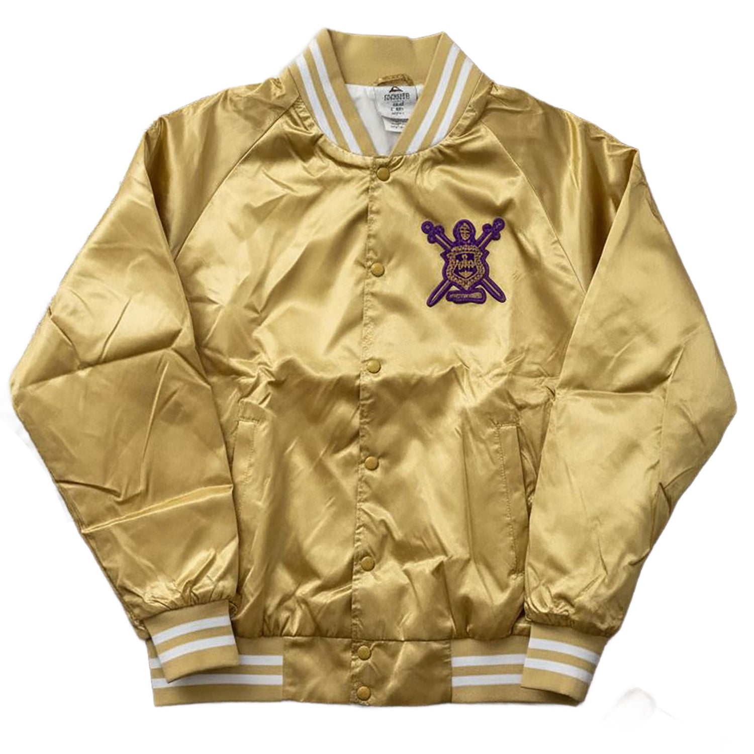 Rock the Purple and Gold with this Omega Psi Phi Satin Jacket. Featuring an embroidered shield on the chest, this sleek piece combines classic fraternity style with modern comfort. Perfect for the yard, homecomings, or any occasion where you're repping the Brotherhood. Show your Manhood, Scholarship, Perseverance, and Uplift in style.
